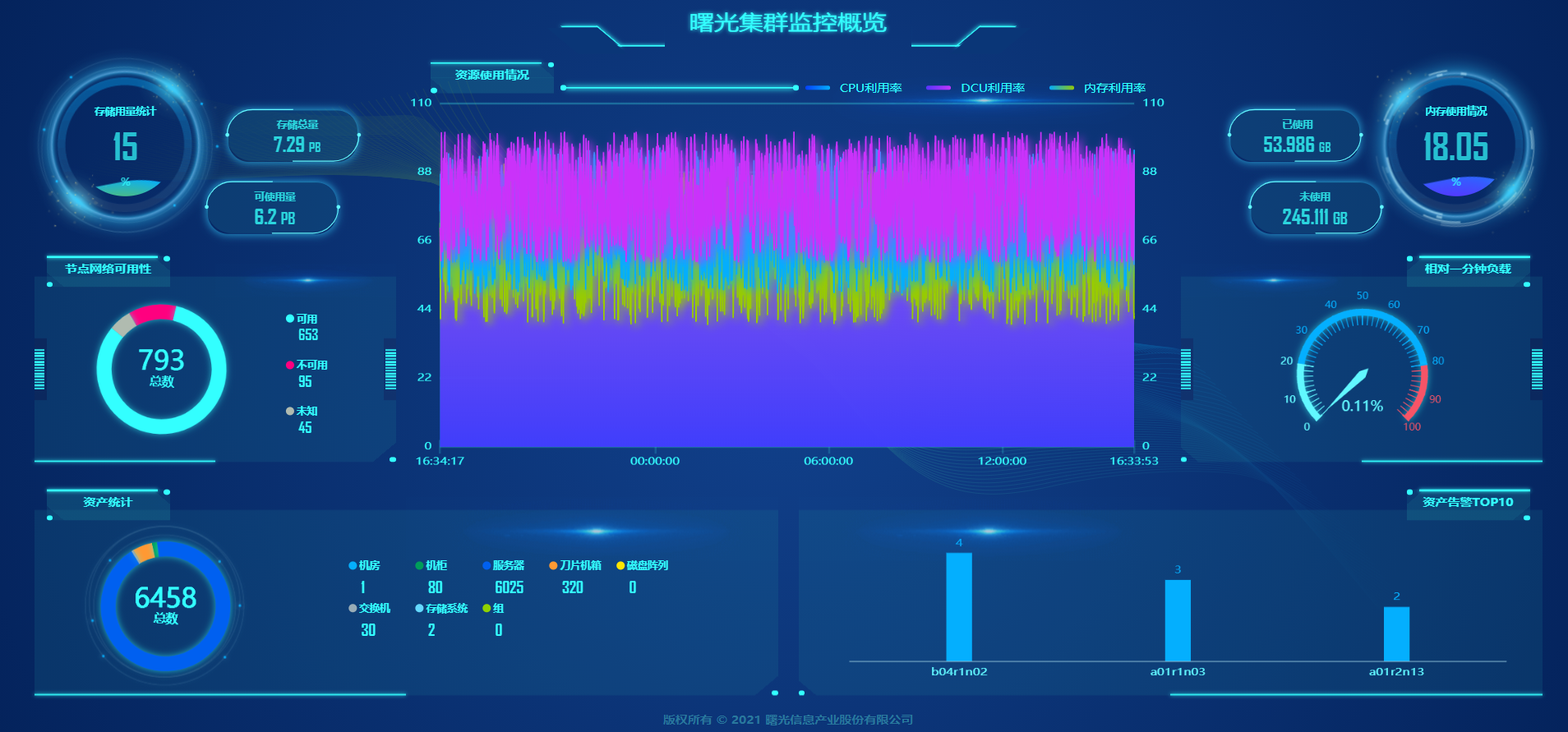 以熱圖的方式直觀展現(xiàn)集群中節(jié)點的性能指標(biāo)。準(zhǔn)確監(jiān)測性能瓶頸和熱點,及時發(fā)現(xiàn)空閑資源,滿足應(yīng)用的調(diào)度。提供歷史數(shù)據(jù)查詢及各種監(jiān)控指標(biāo)報表的導(dǎo)出。